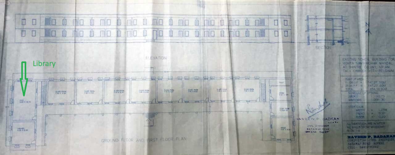 Library - 14mtrX8mtr=112sqmtrs =1200sq feet.